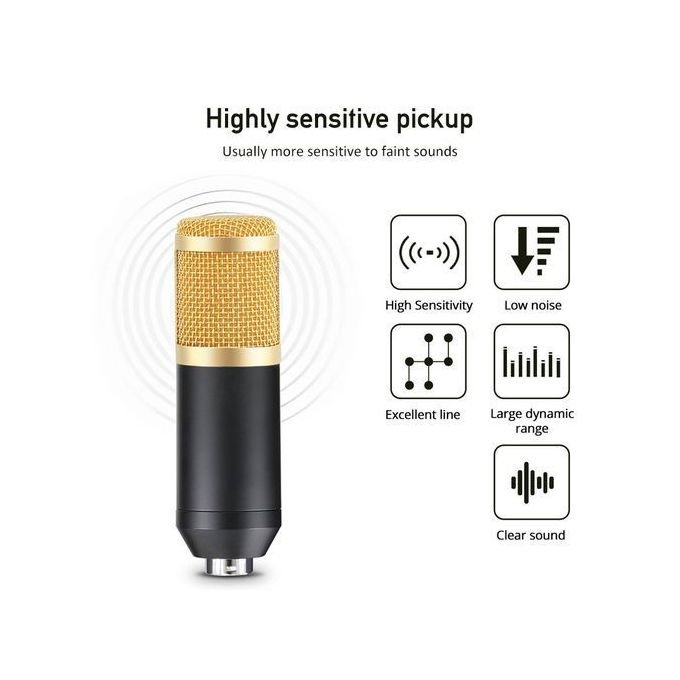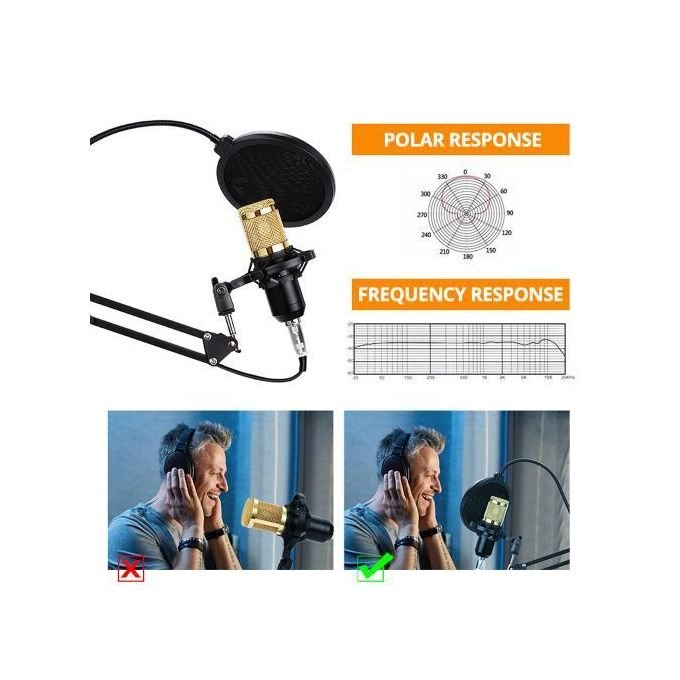 1.BM-800 microphone d’enregistrement professionnel microphone à condensateur à petit diaphragme2.Pour Ordinateur Professionnel Condensateur Audio 3.5mm Filaire BM 800 Studio Microphone D’enregistrement Vocal KTV Karaoké + Support De Microphone/студия микрофон3.Idéal pour les studios de radiodiffusion, les studios de voix off, les scènes, les stations de télévision, etc. Support de microphone de bureau à bras en ciseaux et filtre anti-choc4. Support de microphone de bureau stable, durable et abordable; Les bras à double renfort ajoutent de la force pour supporter beaucoup plus de poids; Bras pliables – minimisez la taille de transport et facile à ranger ; Bras de ciseaux – complètement flexible ajustez l’angle et la hauteur souhaités5. Pince réglable à monter facilement sur le bureau, se fixe solidement à n’importe quel support de micro pour une installation facile et une utilisation pratique. Deux ressorts de suspension sur chaque bras de flèche pour plus de stabilité.6. Double port audio – Connectez l’entrée microphone et la sortie écouteurs/haut-parleur en même temps.