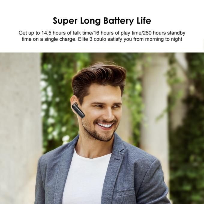 Obtenez jusqu’à 230 heures d’autonomie en veille, profitez des superbes appels sans fil et de l’expérience musicale avec Elite 3 lors de vos déplacements.