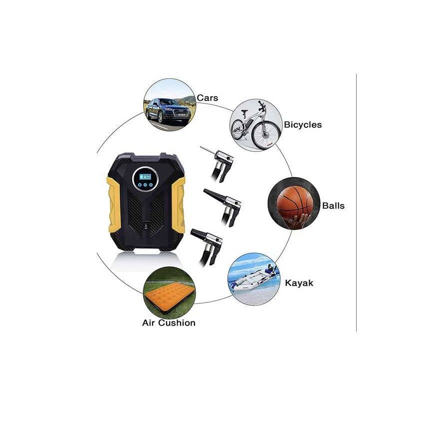 Ce gonfleur de pneu au meilleur prix est conçu avec 3 types de buses pouvant être connectés à tous les roues de voitures, vélos, motos, le ballons de sport, matelas pneumatiques et d’autres glonflables. Son transport est facile grâce à sa taille compacte. Avec sa taille vous pouvez transporter le sac avec le pneu d’espace et le garder dans la voiture ou à la maison selon votre choix.